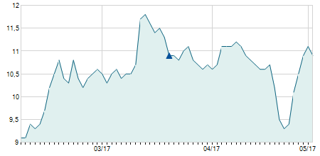 | 13/12/2022 | +0,40 / +4,49% | 9,20 | 9,30 | 8,20 | 9,30 | 8,69 | 8,43 | 1.698.900 |   |
