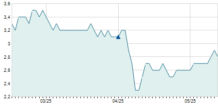 | 05/06/2025 | -0,10 / -1,28% | 7,80 | 8,10 | 7,60 | 7,70 | 7,81 | 7,70 | 2.053.400 |   |