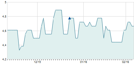 | 15/02/2022 | -0,40 / -1,63% | 24,50 | 24,60 | 23,00 | 24,10 | 24,31 | 17,61 | 456.300 |   |
