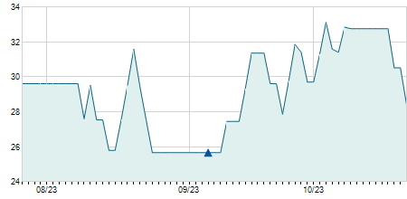 | 01/10/2021 | -0,20 / -1,26% | 15,90 | 16,00 | 15,70 | 15,70 | 15,85 | 11,47 | 891.600 |   |