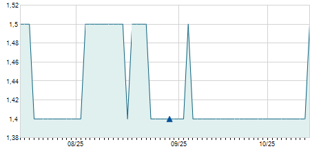 | 31/08/2020 | 0,00 / 0,00% | 6,50 | 6,60 | 6,40 | 6,50 | 6,44 | 3,90 | 700.400 |   |