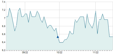 -0,70 / -4,61%