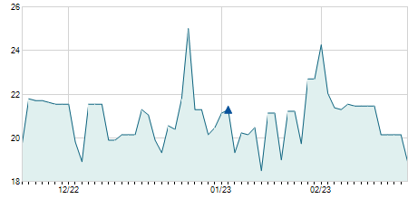 | 04/01/2018 | -0,60 / -4,03% | 15,80 | 15,80 | 14,10 | 14,30 | 14,51 | 9,16 | 20.000 |   |
