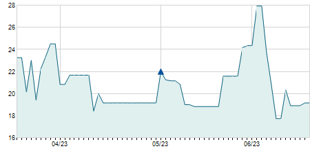 | 18/11/2024 | -0,80 / -1,17% | 71,00 | 71,00 | 67,60 | 67,60 | 68,55 | 64,72 | 2.000 |   |