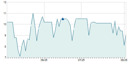 | 24/08/2012 | +0,30 / +3,00% | 9,50 | 10,30 | 9,50 | 10,30 | 10,30 | 3,24 | 3.590 |   |