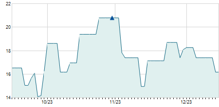 | 27/12/2012 | -0,60 / -5,00% | 11,40 | 11,40 | 11,40 | 11,40 | 11,40 | 3,59 | 5.400 |   |