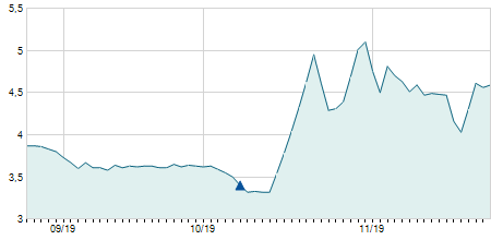 | 19/11/2018 | 0,00 / 0,00% | 11,75 | 11,75 | 11,75 | 11,75 | 11,75 | 8,43 | 0 |   |