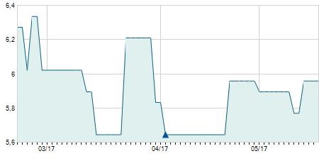 | 17/10/2022 | 0,00 / 0,00% | 10,60 | 10,60 | 10,60 | 10,60 | 10,60 | 8,00 | 0 |   |