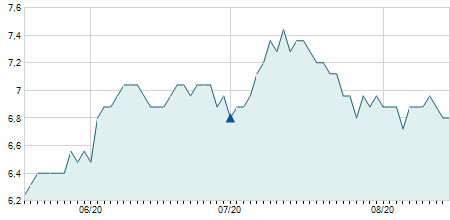 | 22/06/2020 | 0,00 / 0,00% | 1,90 | 1,90 | 1,90 | 1,90 | 1,90 | 1,90 | 0 |   |