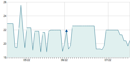 | 12/05/2021 | +0,20 / +2,56% | 7,80 | 8,00 | 7,80 | 8,00 | 7,96 | 5,43 | 5.200 |   |