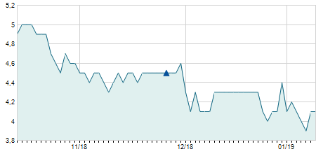 | 13/03/2009 | -0,10 / -1,67% | 5,90 | 6,00 | 5,90 | 5,90 | 5,90 | 1,44 | 50.700 |   |