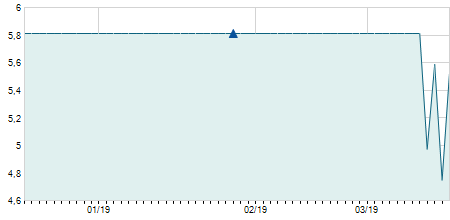 | 20/01/2021 | -0,60 / -11,11% | 4,80 | 4,80 | 4,80 | 4,80 | 4,80 | 4,80 | 600 |   |
