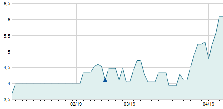 | 12/01/2021 | 0,00 / 0,00% | 5,80 | 5,80 | 5,50 | 5,50 | 5,50 | 5,50 | 11.300 |   |