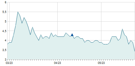 | 06/03/2023 | -0,10 / -0,95% | 10,40 | 10,40 | 10,40 | 10,40 | 10,40 | 10,40 | 100 |   |