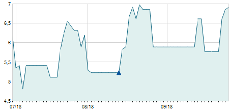 | 18/08/2015 | +2,00 / +13,33% | 17,00 | 17,00 | 17,00 | 17,00 | 17,00 | 15,48 | 100 |   |