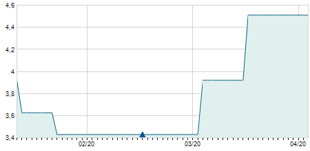 | 04/12/2020 | +0,10 / +6,25% | 1,60 | 1,70 | 1,60 | 1,70 | 1,66 | 1,70 | 33.775 |   |