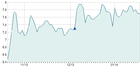 | 20/03/2013 | +1,40 / +7,73% | 19,30 | 19,50 | 19,30 | 19,50 | 19,49 | 17,44 | 19.300 |   |
