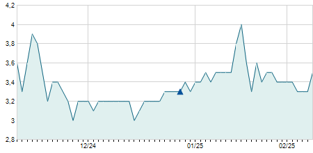 | 08/02/2011 | +1,00 / +6,94% | 15,40 | 15,40 | 15,40 | 15,40 | 15,40 | 2,28 | 100 |   |