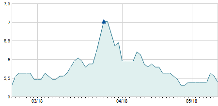 | 11/02/2011 | -0,10 / -0,57% | 17,40 | 17,40 | 17,40 | 17,40 | 17,40 | 2,58 | 0 |   |