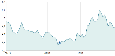 | 22/03/2023 | +0,10 / +2,22% | 4,60 | 4,70 | 4,50 | 4,60 | 4,60 | 4,60 | 293.300 |   |