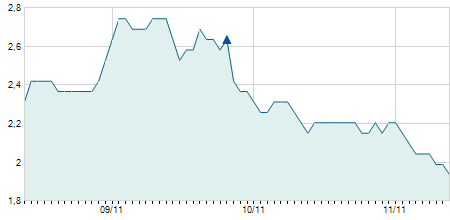 -0,30 / -2,56%
