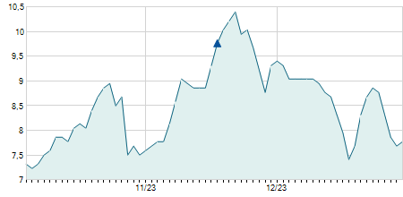 | 19/11/2007 | -4,00 / -4,57% | 84,00 | 87,00 | 83,50 | 83,50 | 83,50 | 19,28 | 90.660 |   |