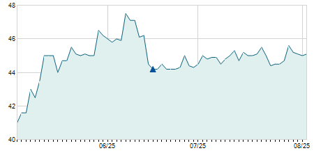 | 16/08/2018 | +0,70 / +5,07% | 14,40 | 14,50 | 14,40 | 14,50 | 14,47 | 7,66 | 1.200 |   |