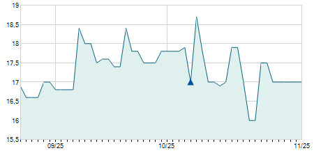 | 12/02/2014 | +1,10 / +6,51% | 18,00 | 18,00 | 18,00 | 18,00 | 18,00 | 18,00 | 100 |   |
