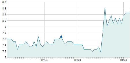 | 03/10/2018 | +0,60 / +4,76% | 13,20 | 13,20 | 13,20 | 13,20 | 13,20 | 9,50 | 100 |   |