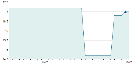 | 27/09/2024 | -0,30 / -1,02% | 29,30 | 29,30 | 28,80 | 29,00 | 29,02 | 26,56 | 441.500 |   |