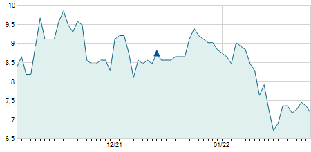 | 01/06/2012 | +0,30 / +4,17% | 7,70 | 7,70 | 7,00 | 7,50 | 7,50 | 3,40 | 3.900 |   |