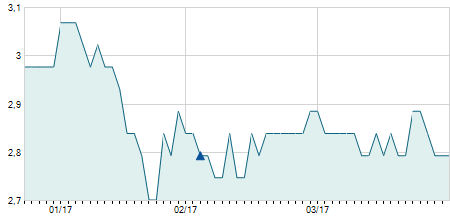 | 08/05/2012 | -0,20 / -2,30% | 8,70 | 8,80 | 8,40 | 8,50 | 8,50 | 3,85 | 27.600 |   |