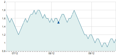 | 07/07/2021 | -0,30 / -2,27% | 13,10 | 13,10 | 12,60 | 12,90 | 12,70 | 10,99 | 12.200 |   |