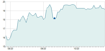 | 19/08/2021 | +0,10 / +0,67% | 14,75 | 15,00 | 14,60 | 15,00 | 14,89 | 12,78 | 97.800 |   |