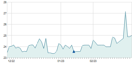 | Mở cửa | 22,80 |