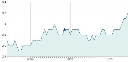 | 04/04/2025 | +0,20 / +2,38% | 8,60 | 8,60 | 8,60 | 8,60 | 8,60 | 8,60 | 1.000 |   |
