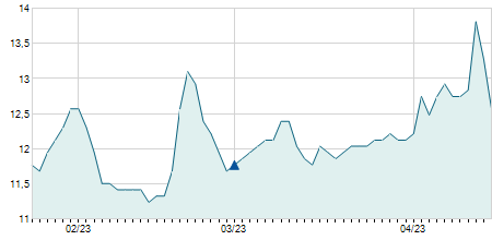 -0,70 / -4,76%