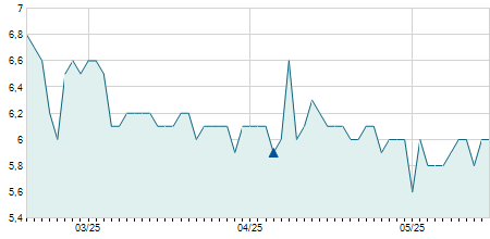 | 06/07/2018 | -0,40 / -4,21% | 9,50 | 9,50 | 8,50 | 9,10 | 8,80 | 7,01 | 348.600 |   |