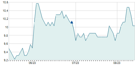 | 11/09/2020 | +0,10 / +1,16% | 8,60 | 8,70 | 8,60 | 8,70 | 8,60 | 7,45 | 98.700 |   |