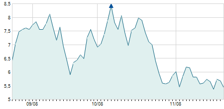 | 25/11/2024 | +0,10 / +0,74% | 13,70 | 13,90 | 13,60 | 13,70 | 13,80 | 13,70 | 751.600 |   |