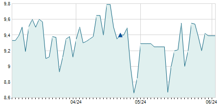 | 12/12/2017 | -0,10 / -0,88% | 11,40 | 11,40 | 11,00 | 11,30 | 11,37 | 8,70 | 22.900 |   |