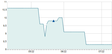 | 09/05/2018 | -0,20 / -1,52% | 13,20 | 13,20 | 13,00 | 13,00 | 13,05 | 10,01 | 133.000 |   |
