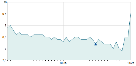 | 09/05/2018 | -0,20 / -1,52% | 13,20 | 13,20 | 13,00 | 13,00 | 13,05 | 10,01 | 133.000 |   |