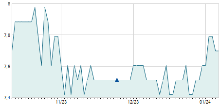| 03/04/2018 | -0,30 / -1,96% | 15,40 | 15,40 | 15,00 | 15,00 | 15,08 | 11,55 | 270.300 |   |