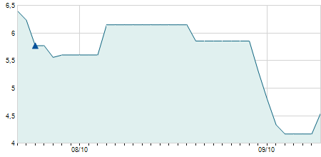 | 15/12/2009 | -0,50 / -4,20% | 11,50 | 11,80 | 11,40 | 11,40 | 11,40 | 6,51 | 393.970 |   |