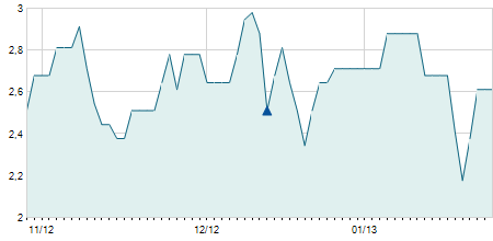 | 31/03/2010 | -0,80 / -1,62% | 48,70 | 50,00 | 48,60 | 48,60 | 48,60 | 8,95 | 5.100 |   |