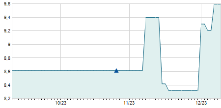 | 12/03/2020 | -0,80 / -4,85% | 15,70 | 15,70 | 15,70 | 15,70 | 15,70 | 9,26 | 1.600 |   |