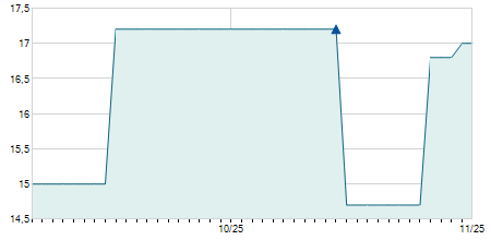 | 10/11/2023 | +0,15 / +0,96% | 15,40 | 16,45 | 15,35 | 15,75 | 15,97 | 12,00 | 56.293.700 |   |