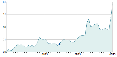 | 26/02/2021 | +2,25 / +6,94% | 32,40 | 34,65 | 31,95 | 34,65 | 32,40 | 10,07 | 7.261.900 |   |