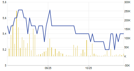 | 26/03/2021 | -0,80 / -2,37% | 33,80 | 33,80 | 31,45 | 33,00 | 32,73 | 9,59 | 6.447.200 |   |